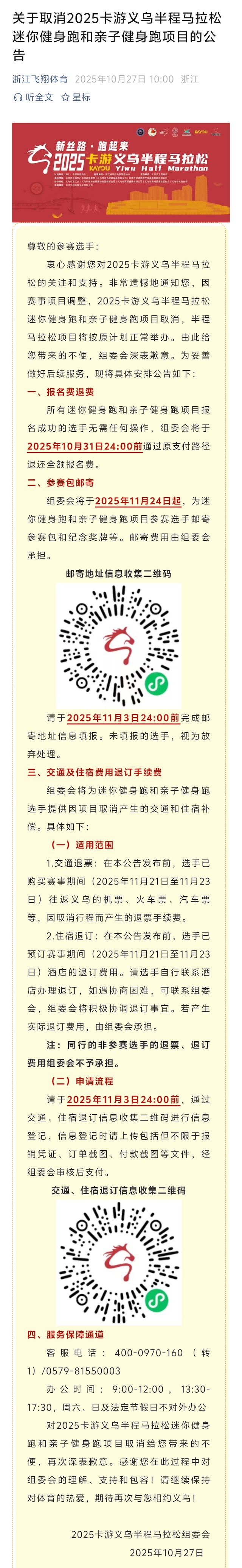 提示:取消健康跑,全马和半马继续举办