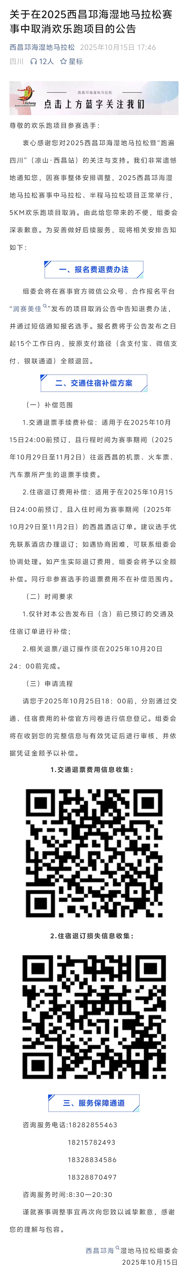 提示:欢乐跑取消,全马和半马继续举办